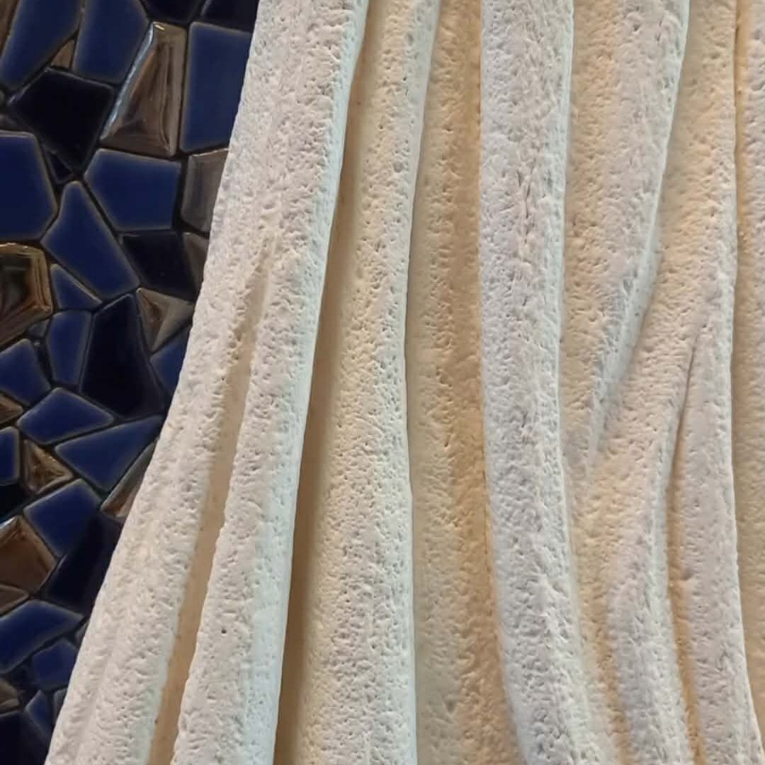 Magali Horrie façonne des œuvres uniques mêlant sculpture sur pierre et bois, tapisserie de fauteuils, mosaïque et peinture, utilisant des techniques traditionnelles et contemporaines avec minutie et passion.